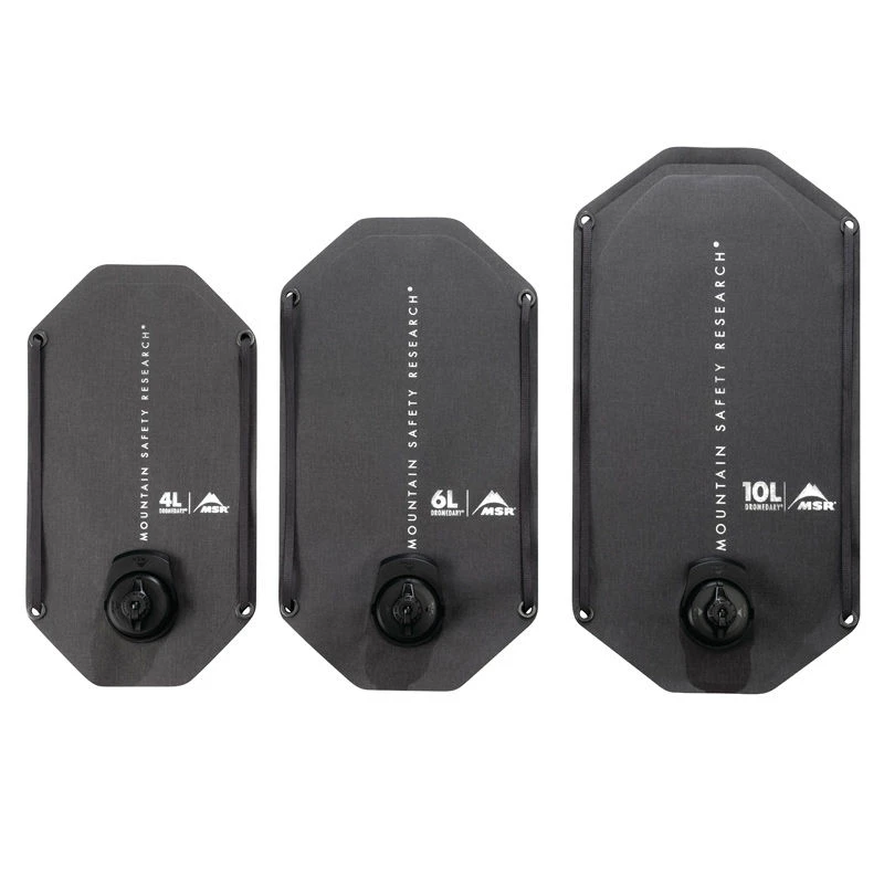 MSR Dromedary Bags make water transportation and hydration easy and reliable. The bags are completely collapsible for optimal packing efficiency, making them perfect for everything from alpine to road expeditions. The versatile 3-in-1 cap lets you fill, drink and pour with ease. Accessories like the MSR Hydration Kit add further versatility. Perimeter webbing allows for convenient pack attachment and hanging.